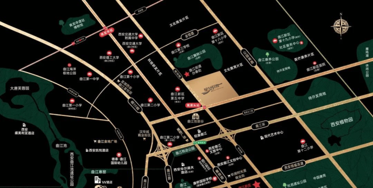 文化科教园:片区内规划有公园(文教园城市公园)、学校(曲江第三学校)、医疗康养(曲江新区医院)地铁五号线 、曲江创意谷等