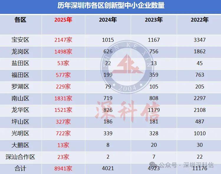 2025年深圳市创新型中小企业共计公示8941家企业,计划报深圳市专精特新的企业请做好准备~